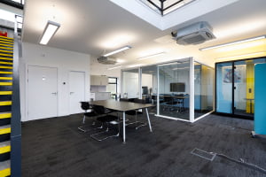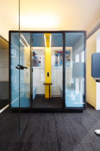 We used a Senator Cell Pod meeting room and a Senator Hideaway 2 person meeting pod. We also provided electric sit-stand desks with acoustic screens for quiet calls and focused working.
