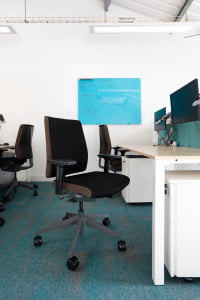 We wanted to create a modern, bright working environment, with ergonomic seating, ergonomic monitor arms and desktop power units.