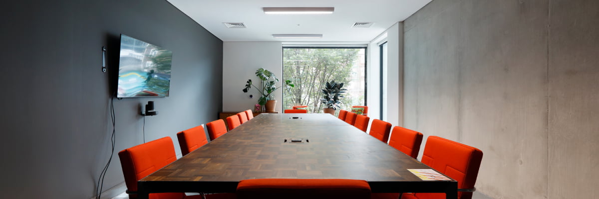 With a strong colour palette of burnt orange, greens and dark wood defined from the start, we were able to present several meeting room options to fulfil the brief.